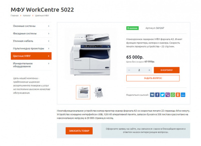 - Компактный блок заказа товара с ценой, индикатором наличия и формой обратной связи “Задать вопрос”;